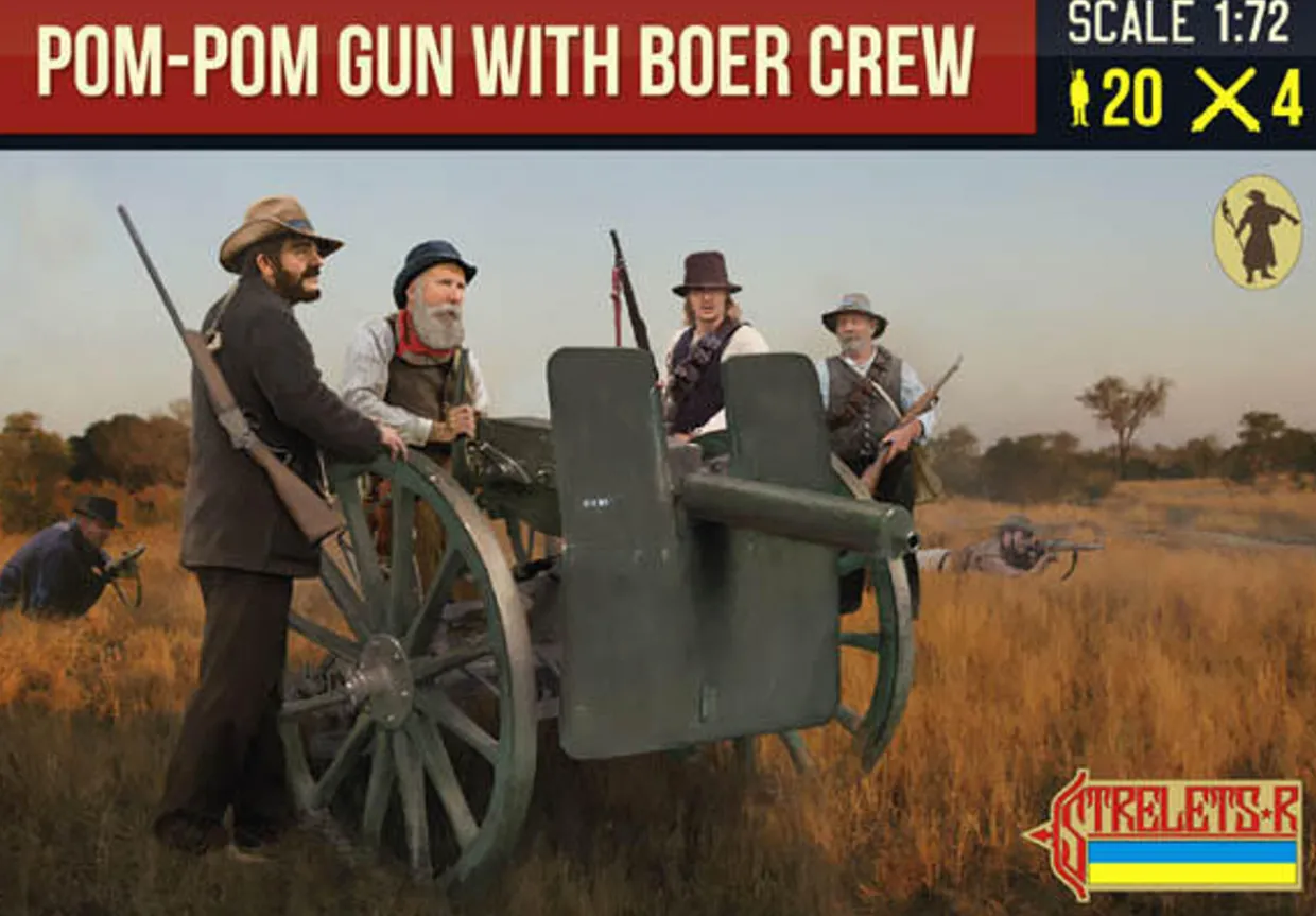 The Strelets 1/72 Pom Pom Gun with Boer Crew from our 1/72 and 1/76 scale figure model kits range accurately recreates the real-life Boer soldiers and autocannon from the Boer War. This plastic model kit requires paint, and may require glue, to complete.