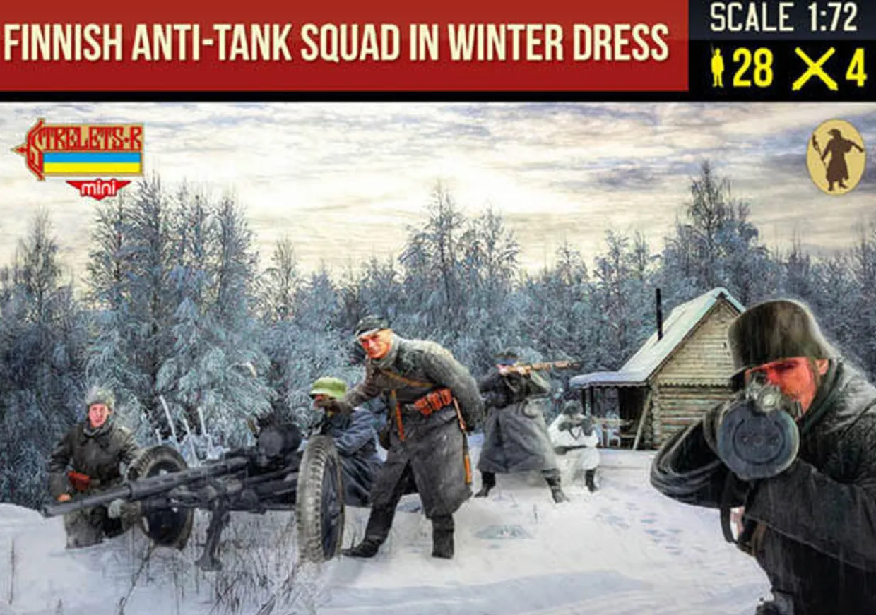 The Strelets 1/72 Finnish Anti-Tank Squad in Winter from our 1/72 and 1/76 scale figure model kits range accurately recreates the real-life Finnish soldiers and anti-tank gun from World War II. This plastic model kit requires paint, and may require glue, to complete.