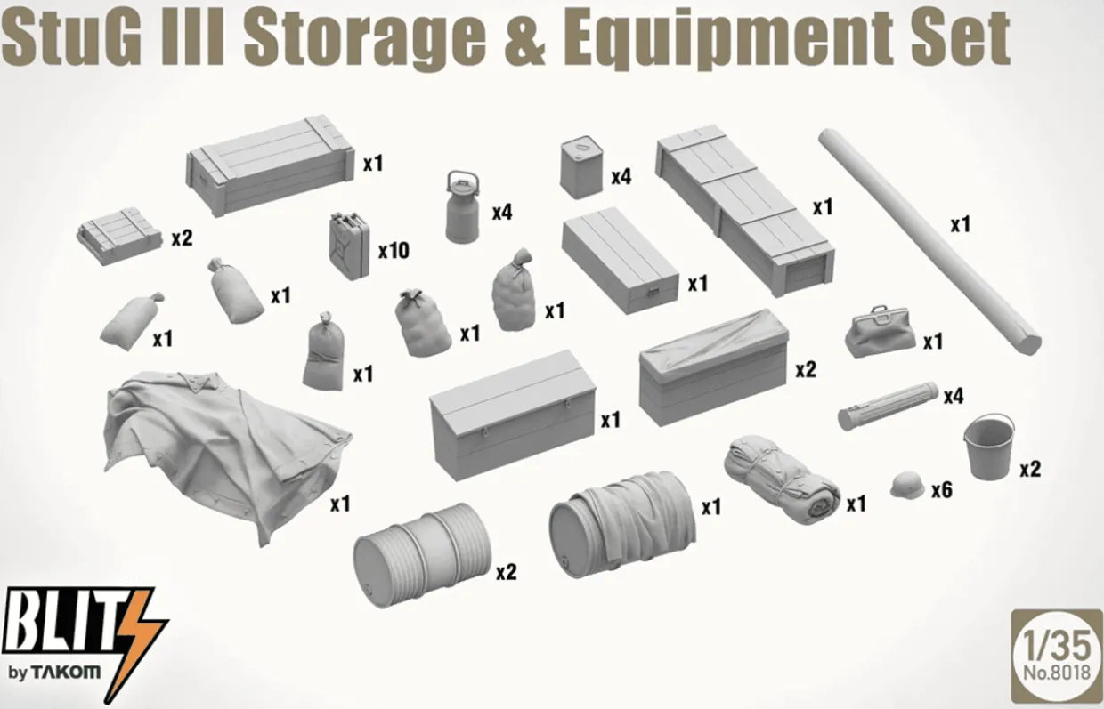 Model: 08018 StuG.III Storage & Equipment Set Plastic Model Kit
