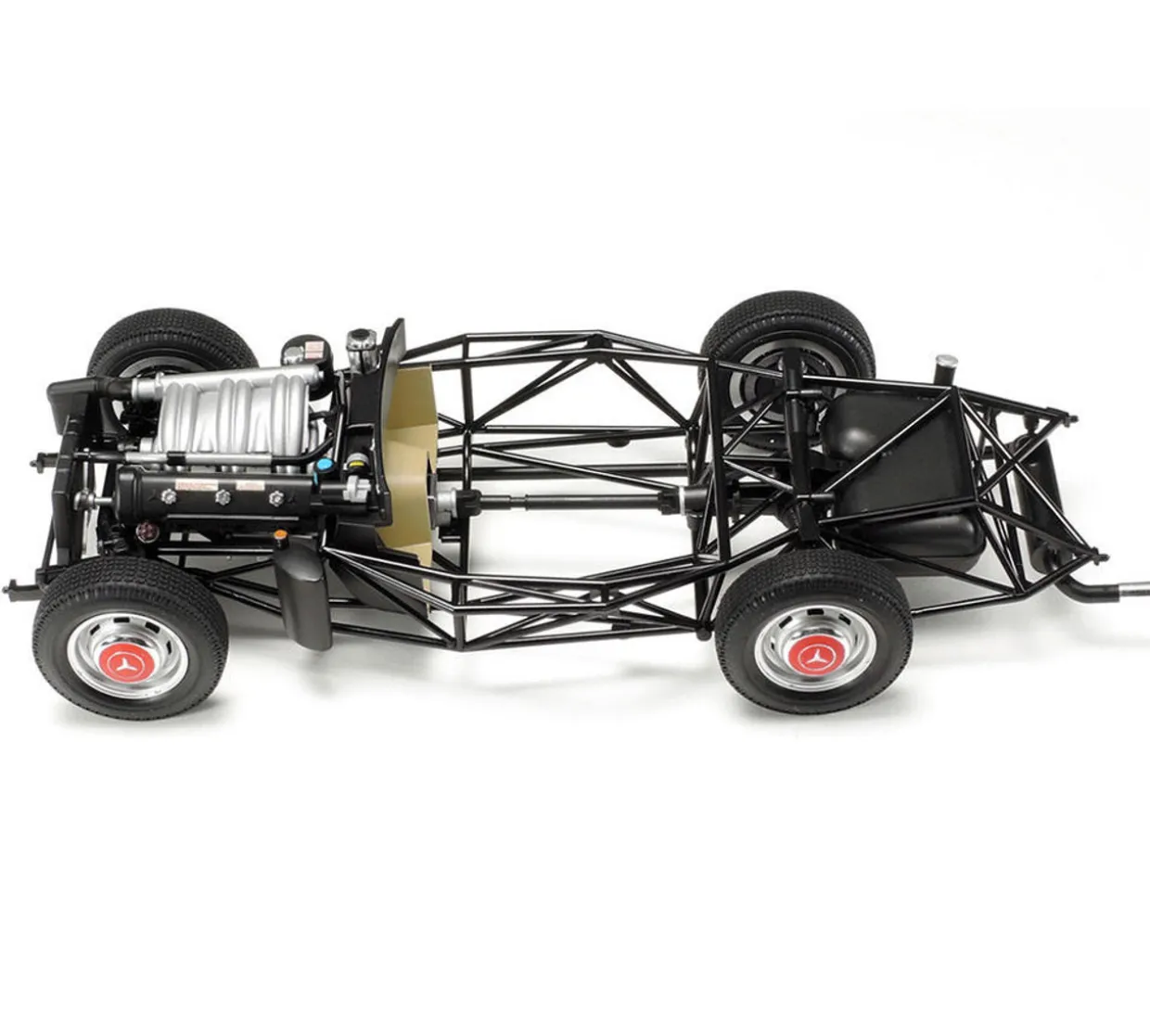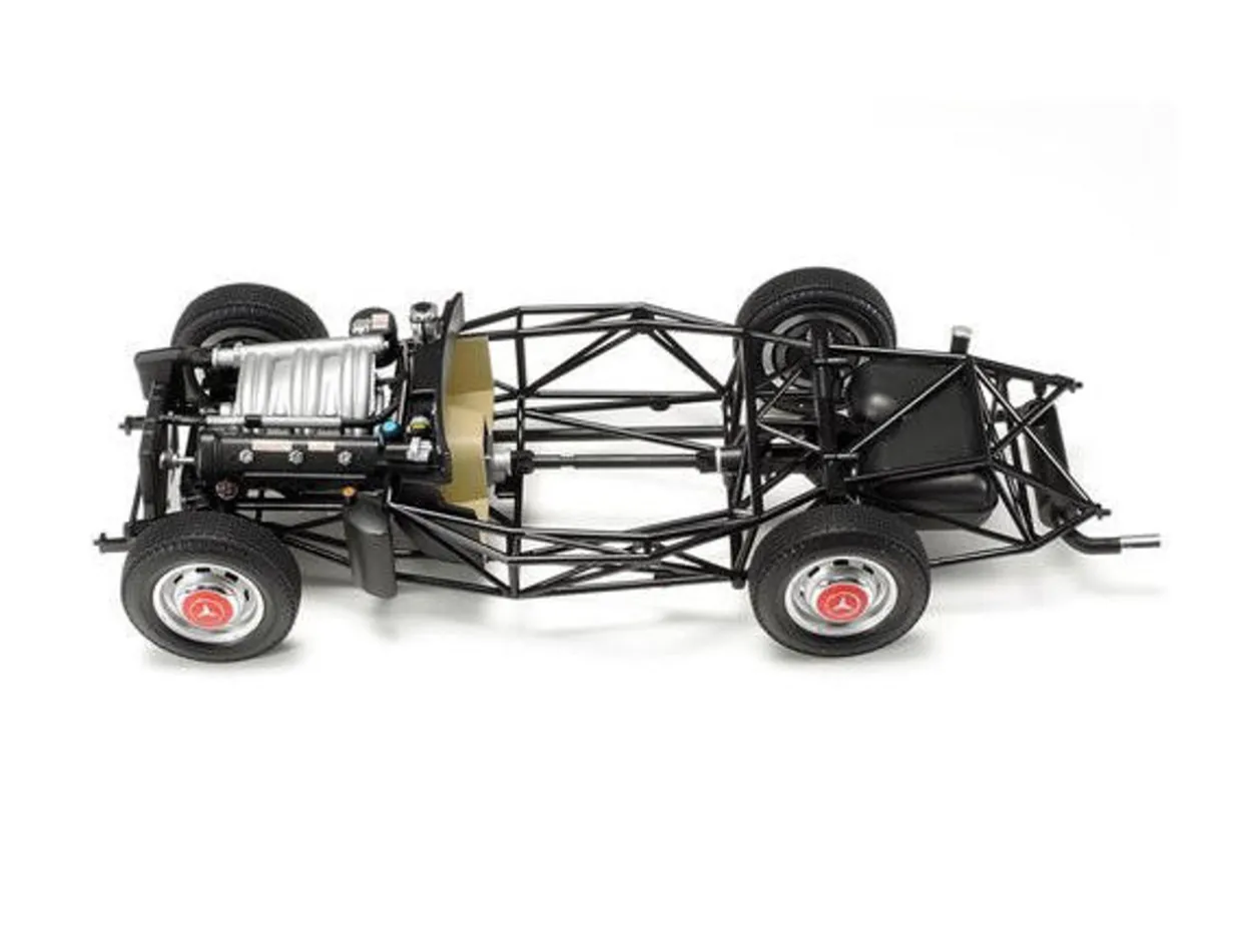 The Tamiya 1/24 Mercedes-Benz 300SL from our 1/24 and 1/25 scale car model kits range accurately recreates the real-life classic sports car. This plastic model kit requires paint and glue to complete. The Mercedes-Benz 300SL joins the 1/24 Sports Car Series as it is considered an all-time classic in the automotive world. The real car began life as a prototype for the German motor giants works racing team, taking part in international races, and in 1954 a production version debuted at the International Motor Show in New York. Despite nominal road car status the 300SL was still a very racy vehicle and proved popular, particularly in the United States. It possessed a 3-liter engine (hence the 300 in its name), and a highly lightweight body (SL stands for Sport Leicht, lit. light sports’) with striking gull wing doors. 1,400 cars were produced by the end of its production run in May 1957. The Tamiya model kit captures the real life subject down to the working Gull-Wing doors and complex tubular space frame.