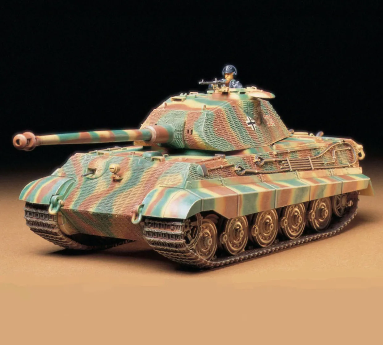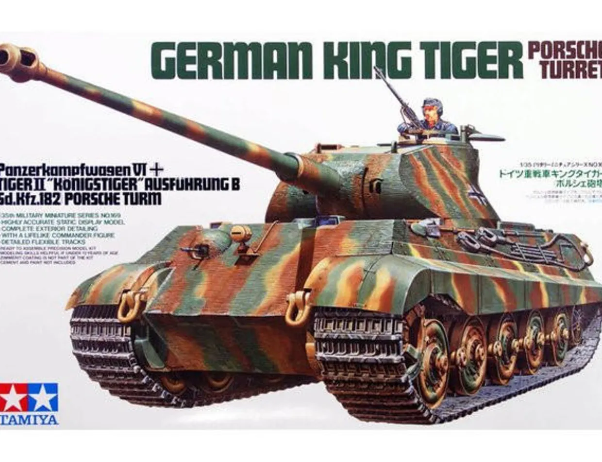 The Tamiya 1/35 Pz.Kpfw.VI Ausf.B King Tiger Porsche Turret from our 1/35 scale military vehicle model kits range range accurately recreates the real-life German heavy tank from World War II. This plastic model kit requires paint and glue to complete.