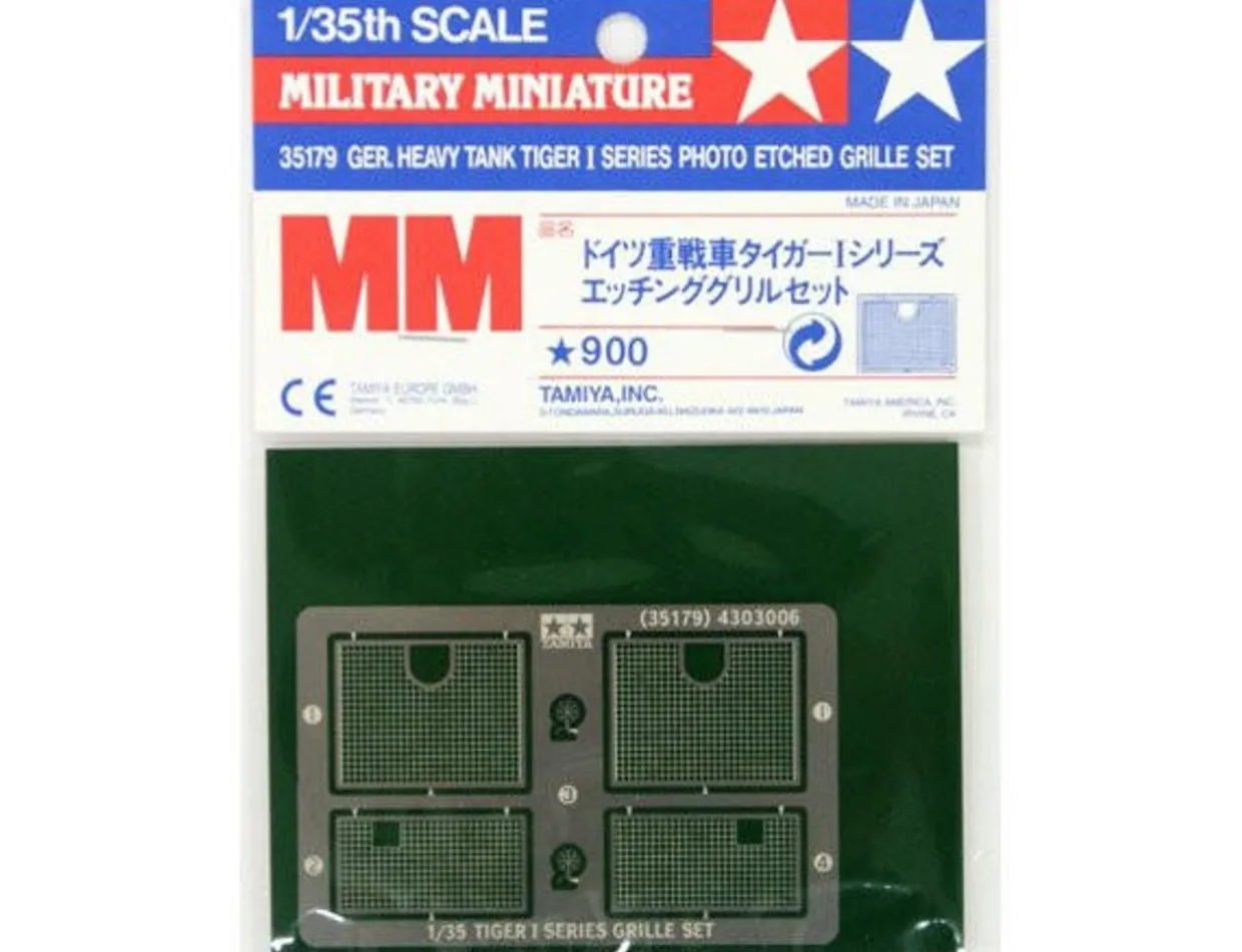 The Tamiya 1/35 German Tiger I Photo-Etched Grilles Set is a plastic model kit in the Tamiya 1/35 Military Plastic Model Kits. This plastic model kit requires paint and glue to complete.