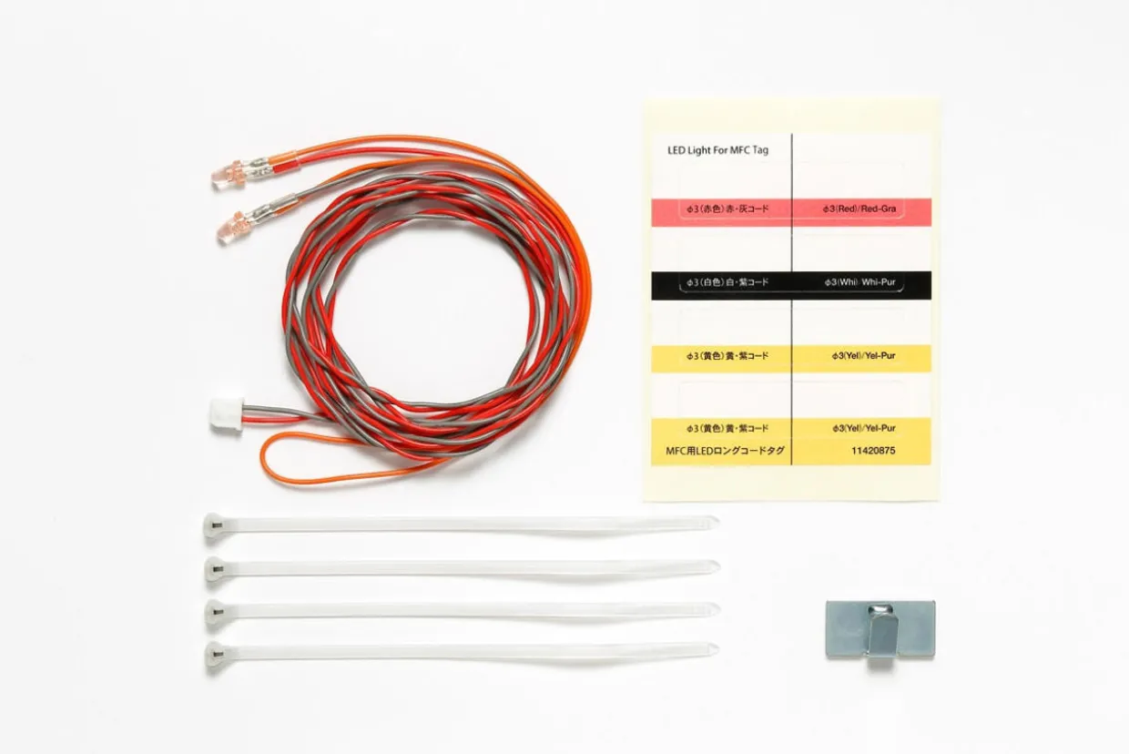 This TAMIYA LED set allows you to light up longer R/C truck models. They are compatible with Tractor Truck Multi-Function Control units MFC-01 and MFC-03. LEDs come ready to use, with easy-use connectors and tag stickers included.