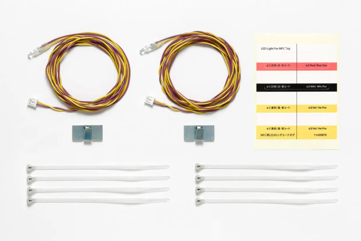 This TAMIYA LED set allows you to light up longer R/C truck models. They are compatible with Tractor Truck Multi-Function Control units MFC-01 and MFC-03. LEDs come ready to use, with easy-use connectors and tag stickers included.