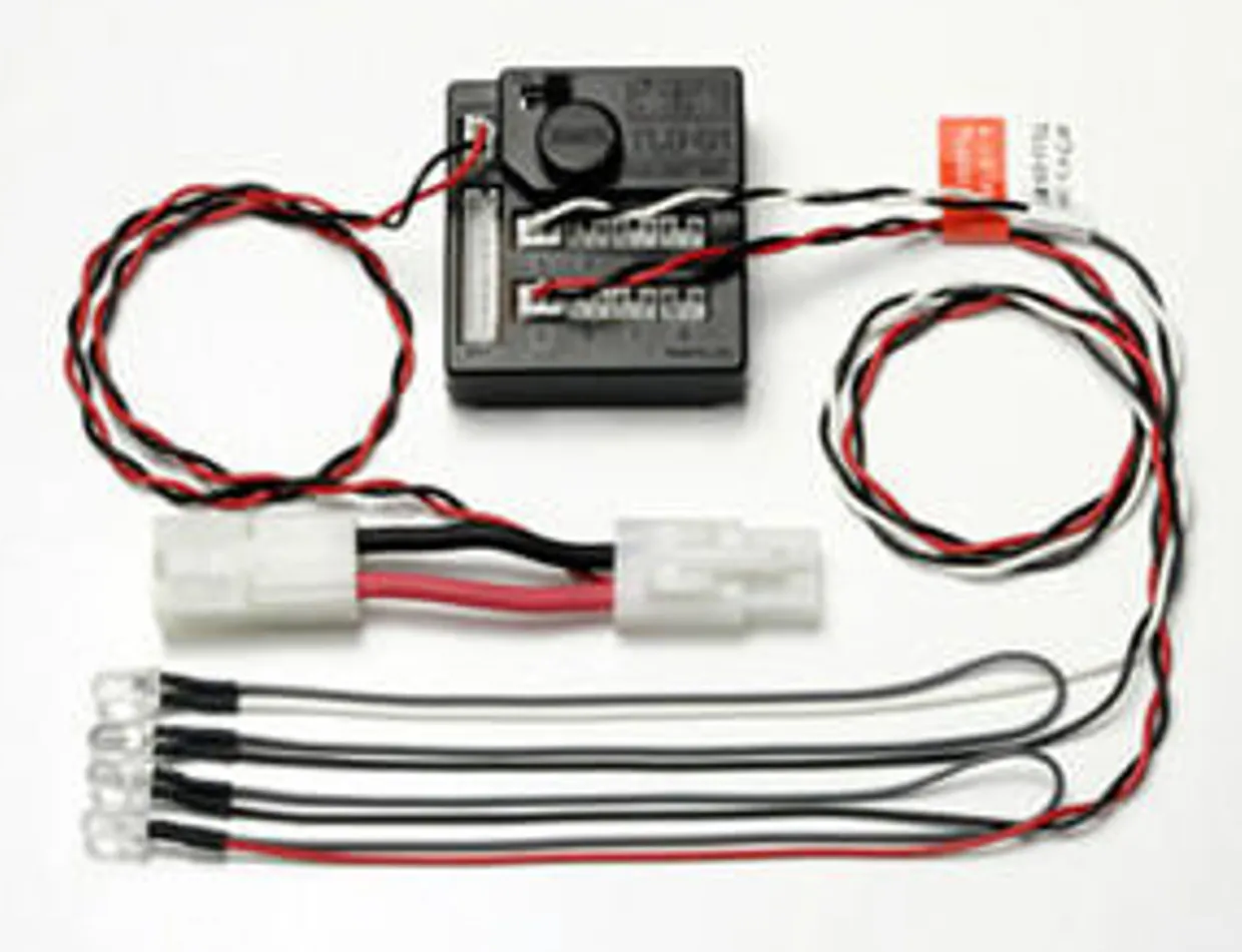 The Tamiya LED Light Unit TLU-01 is an accesory for electric radio control cars. Using the cars existing power source, you can run up to 16 LED’s. Unit includes 2 red and 2 white LED’s.