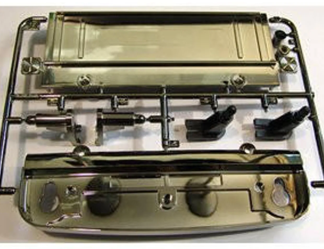The Tamiya Midnight Pumpkin E Parts Body Mounts (Metallic) is a replacement part for the Tamiya Midnight Pumpkin remote controlled car. This is the chrome plastic version.