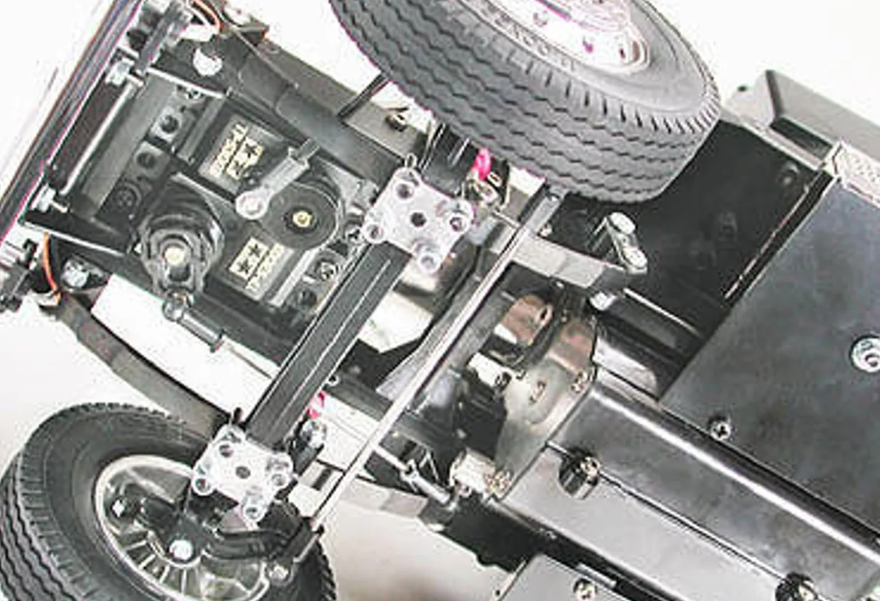 Grill, tank, exhaust and steps have been beautifully rendered with metal plated parts. Kit includes stickers and 540 motor. 7.2V battery pack and RC system are sold separately. the Tractor Truck Multi-Function Control Unit