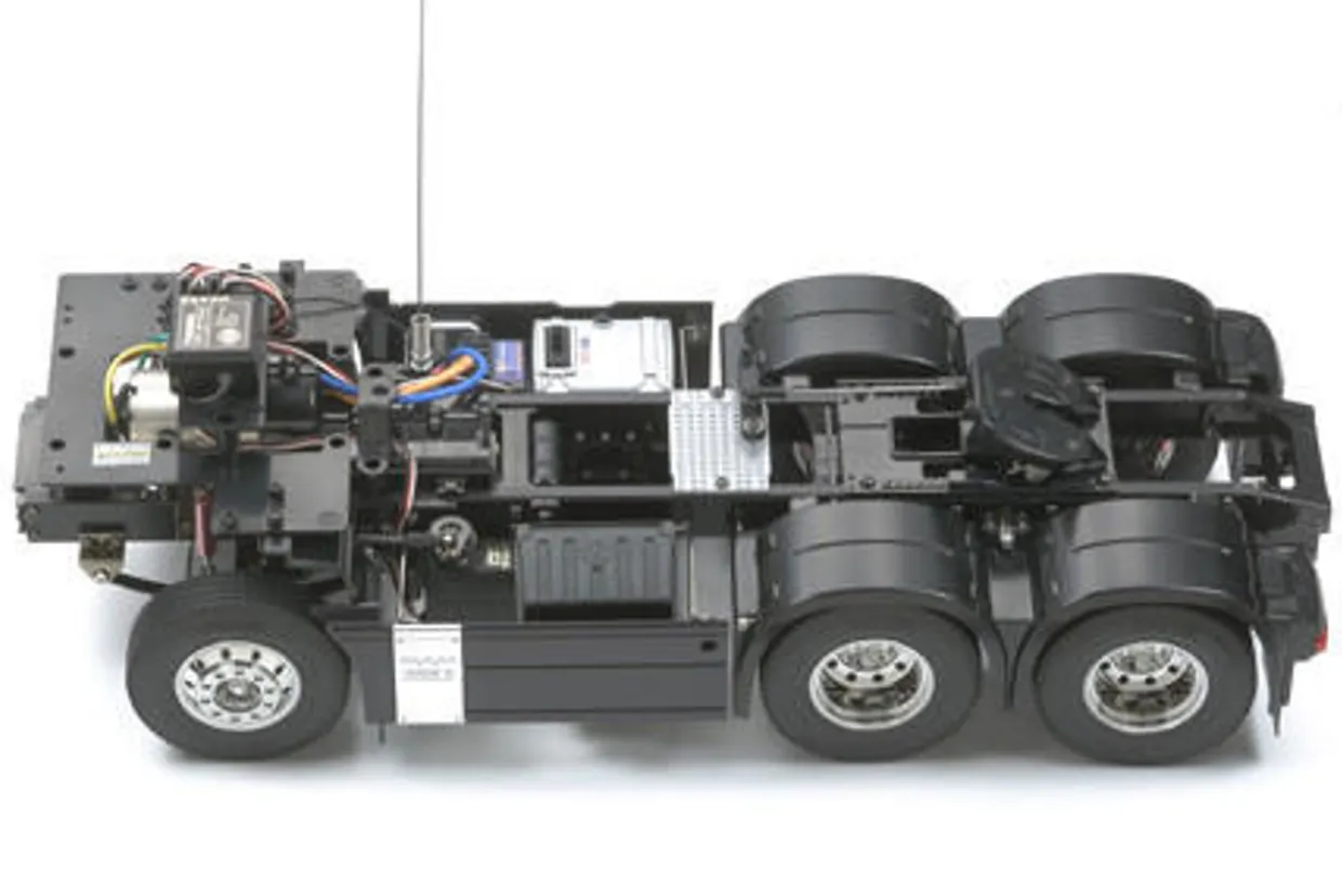 - Fender interiors and exteriors are fully depicted for the ultimate in accuracy and realism. Durable ladder frame chassis consists of aluminum channel and resin cross member. Kit-included coupler enables use of any of Tamiyas currently available 1/14 scale trailers. Includes assembly type 3-speed transmission.