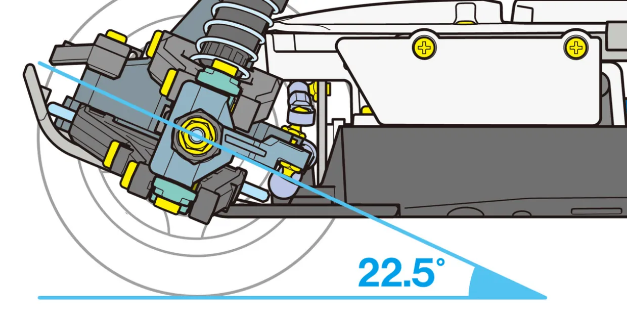 - Front suspension arms have a skid angle of 22.5 degrees for superlative off-road handling and performance.