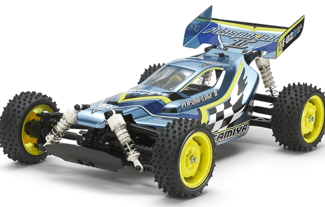 This is an updated version of the classic Plasma Edge buggy body. It features new stickers and a tweaked body design. It is mounted on the easy-to-build and maintenance TT-02B chassis. The TT-02B uses the TT-02 as its base, adding longer suspension arms, CVA shock units, and buggy bumpers to give it great off-road performance.