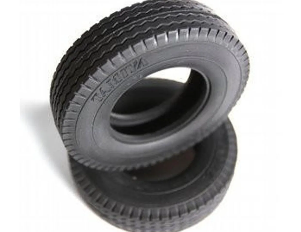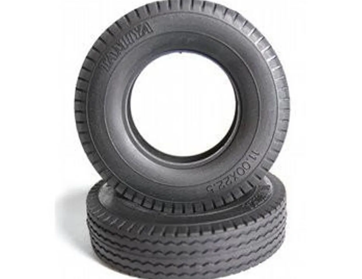 The Tamiya R/C Tractor Truck Tyres (2pcs) Hard 22mm is suitable for use with 1/14 scale Tamiya radio controlled trucks.