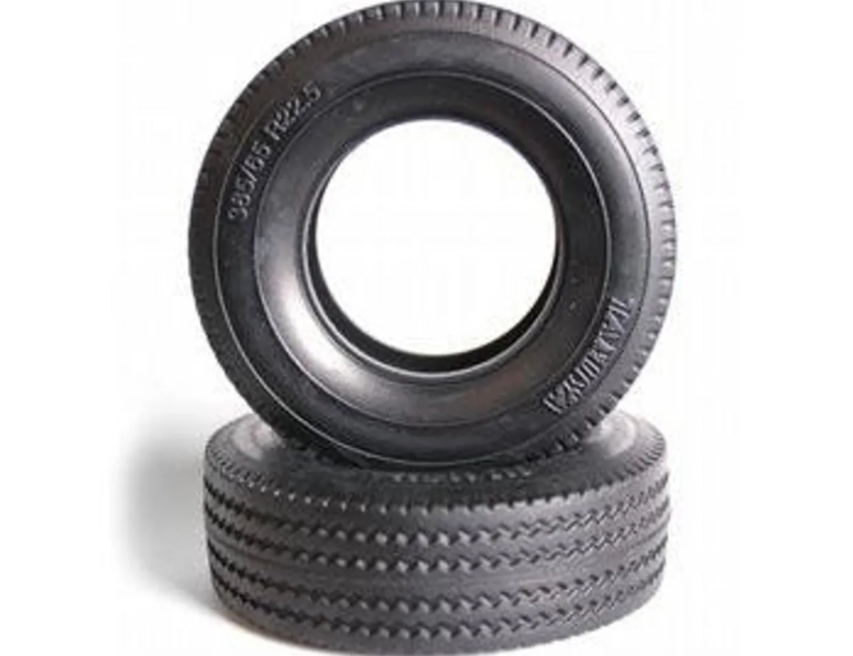 These tractor truck tyres are made of a hard compound material which is well-suited to use on Tamiya 1/14 scale tractor trucks. Using these tires on the front of the trailer combats over-steer and rear sliding to provide a more stable driving experience. Fitting them to the trailer means smoother cornering to lower traction.