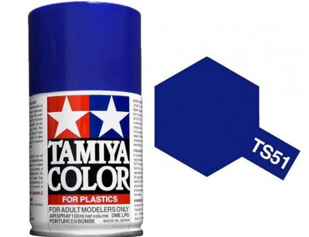 The Tamiya TS-51 Racing Blue Spray Paint is a synthetic lacquer which can be used to paint plastic model kits. Each can contains 100ml of paint, and is not affected by acrylic or enamel paints, meaning further detailing is possible.