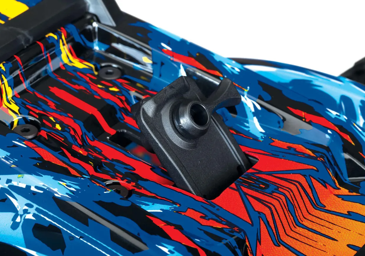 Beneath the sleek clipless body, the heavy duty driveline delivers extreme Velineon brushless horsepower. The larger Talon EXT wheels and tyres provide versatility and grip for any terrain, from backyard trails to concrete skate parks. Rustler 4X4 VXL destroys convention to become the new performance and fun standard for 4×4 stadium trucks!