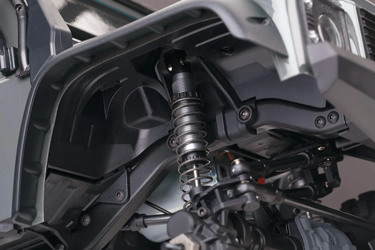 The ready-to-run Traxxas RC 1/10 TRX-4 Crawler Land Rover Defender 110 2.4 GHz from our radio controlled monster trucks and crawlers range is loaded with innovation that instantly obsoletes the status quo with exciting new features, versatility, and capability. In other words, we built it the Traxxas way, rugged, powerful, and ready for fun! Underneath the authentic scale look is a machine built for extreme off-road capability that takes you to new places and new adventures. Exclusive portal axles deliver maximum ground clearance that dramatically turns “no way” into “no problem.” Whether you are enjoying outdoor trails or getting technical on the rocks, the remote-locking front and rear differentials and high/low range transmission provide unmatched driving versatility.
