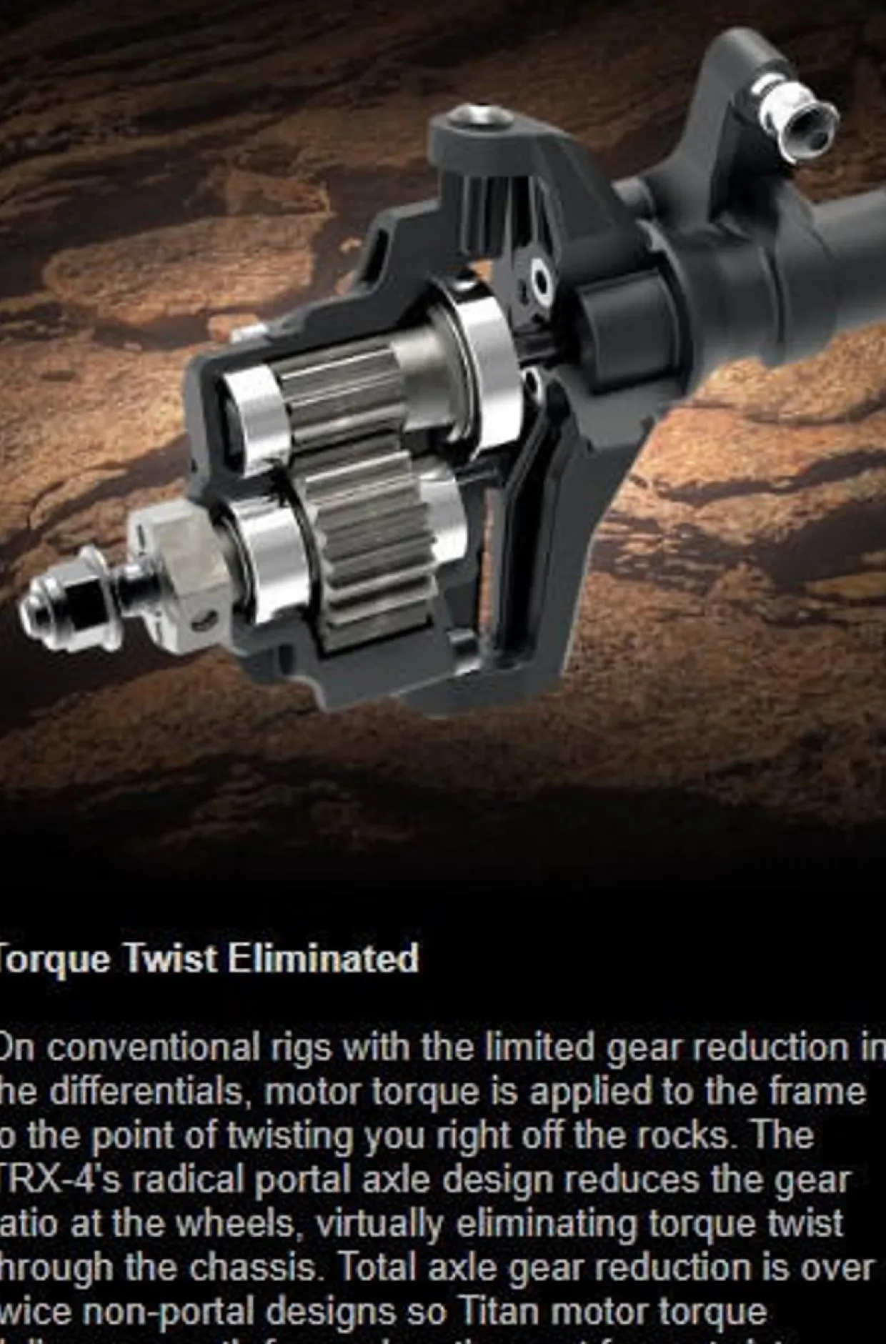 - Portal Axles provide Increase ground clearance (3.14″) and eliminate torque twist