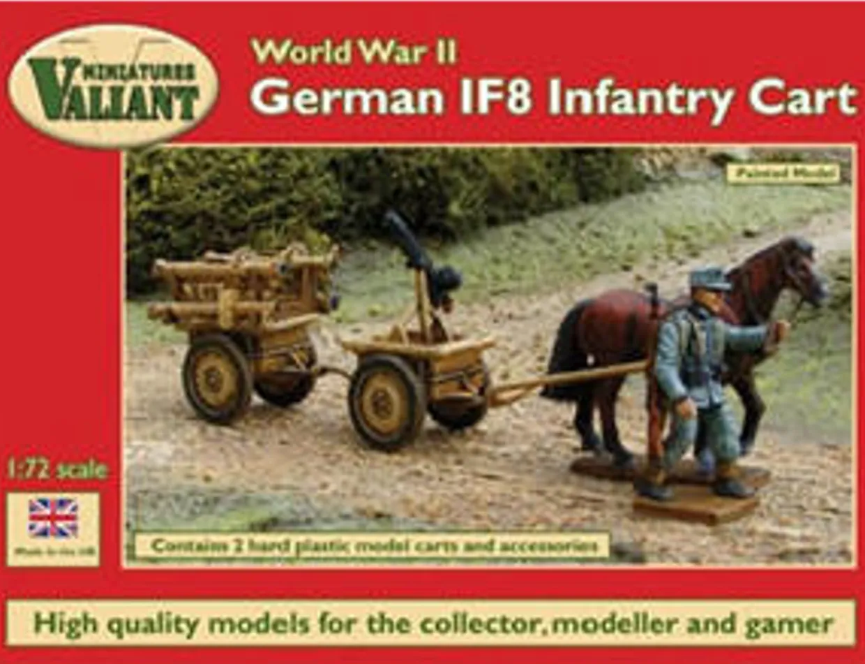 The Valiant Miniatures 1/72 German IF8 Infantry Cart from our 1/72 and 1/76 scale figure model kits range accurately recreates the real-life small transport carts from World War II that could be drawn by hand or by horse.