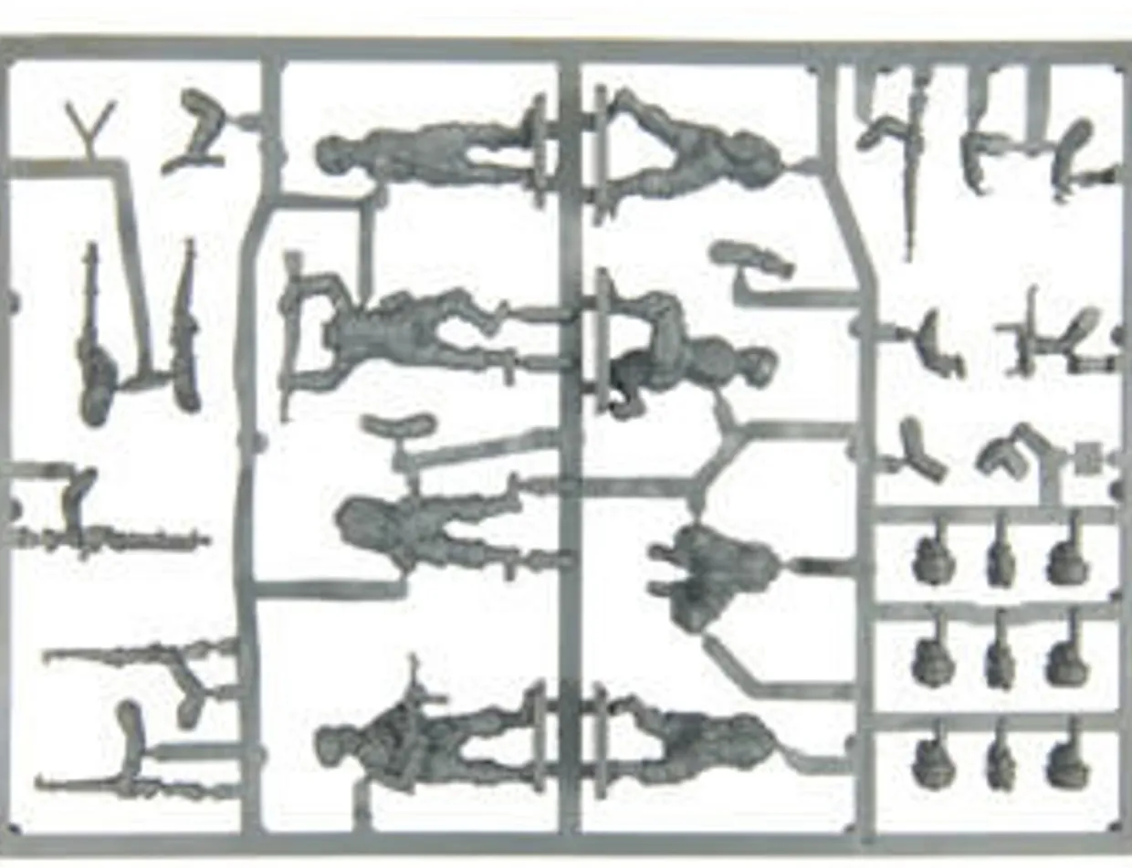 Our Valiant Paratroops are modeled on the troops that took part in the assault on Crete in 1940. This means our versatile figures have a mixture of early and late pattern smocks and separate heads have the distinctive paratrooper helmet cover. Six of the eight poses are armless figures that can either be equipped with the various weapons options in the set (MP 40 sub machine guns, MG 34 machine guns or KAR 98 rifles) or late war weaponry from the Classic German Infantry and Germans in Normandy sets can be added to convert the figures into elite mid/late war ground troops.