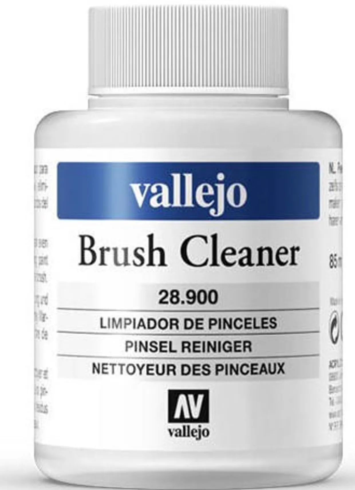 The Vallejo 85ml Brush Cleaner for brushes which have been used with alcohol based paints (Liquid Gold, Supergold) and brushes which simply need a more thorough cleaning. Will not damage even the finest Kolinsky Sable brushes.