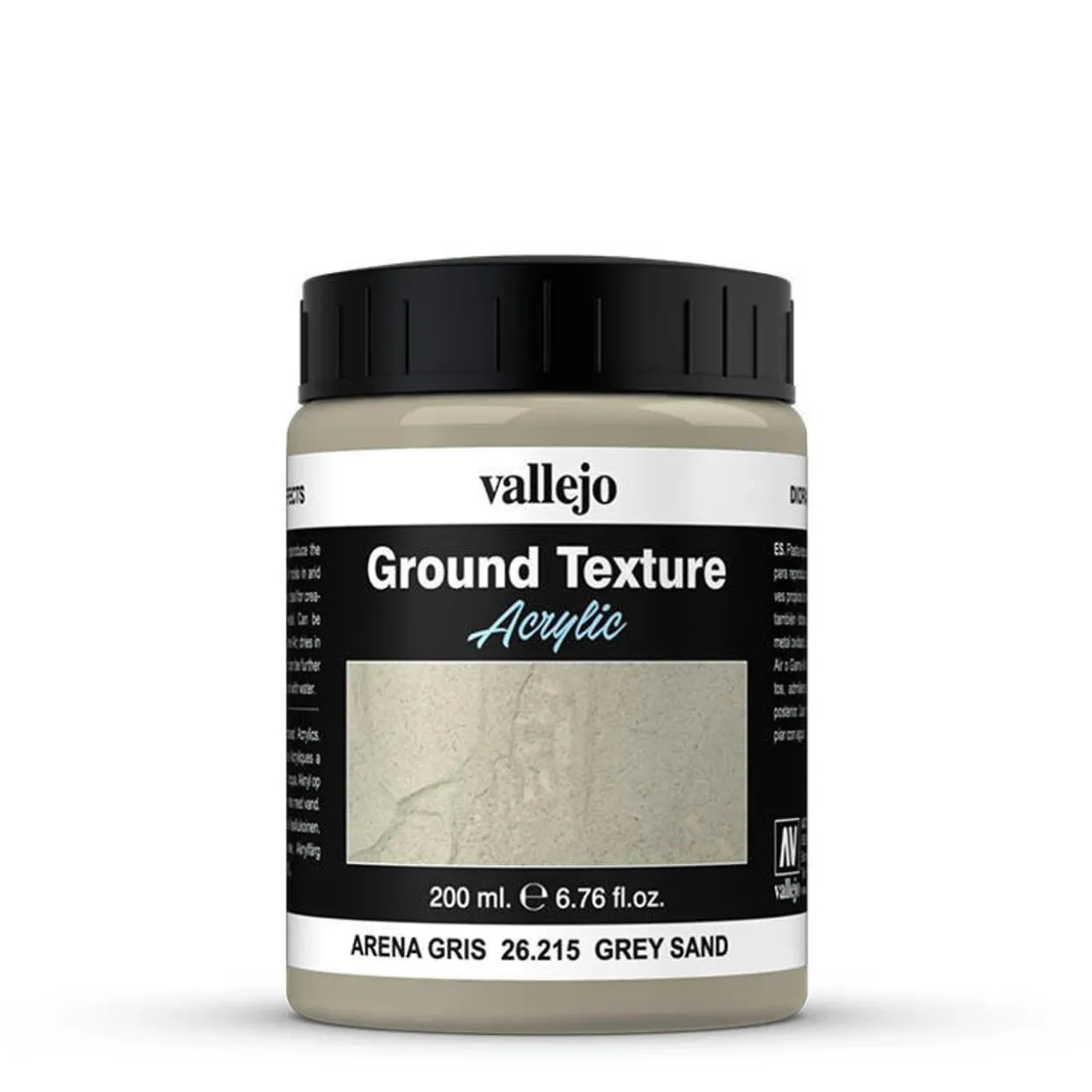 Vallejo Acrylic Stone Textures 200ml Grey Sand. The innovative range of Weathering Effects offers the modeler a new medium for depicting the effects of exposure to weather and extreme climates on vehicles and armor.