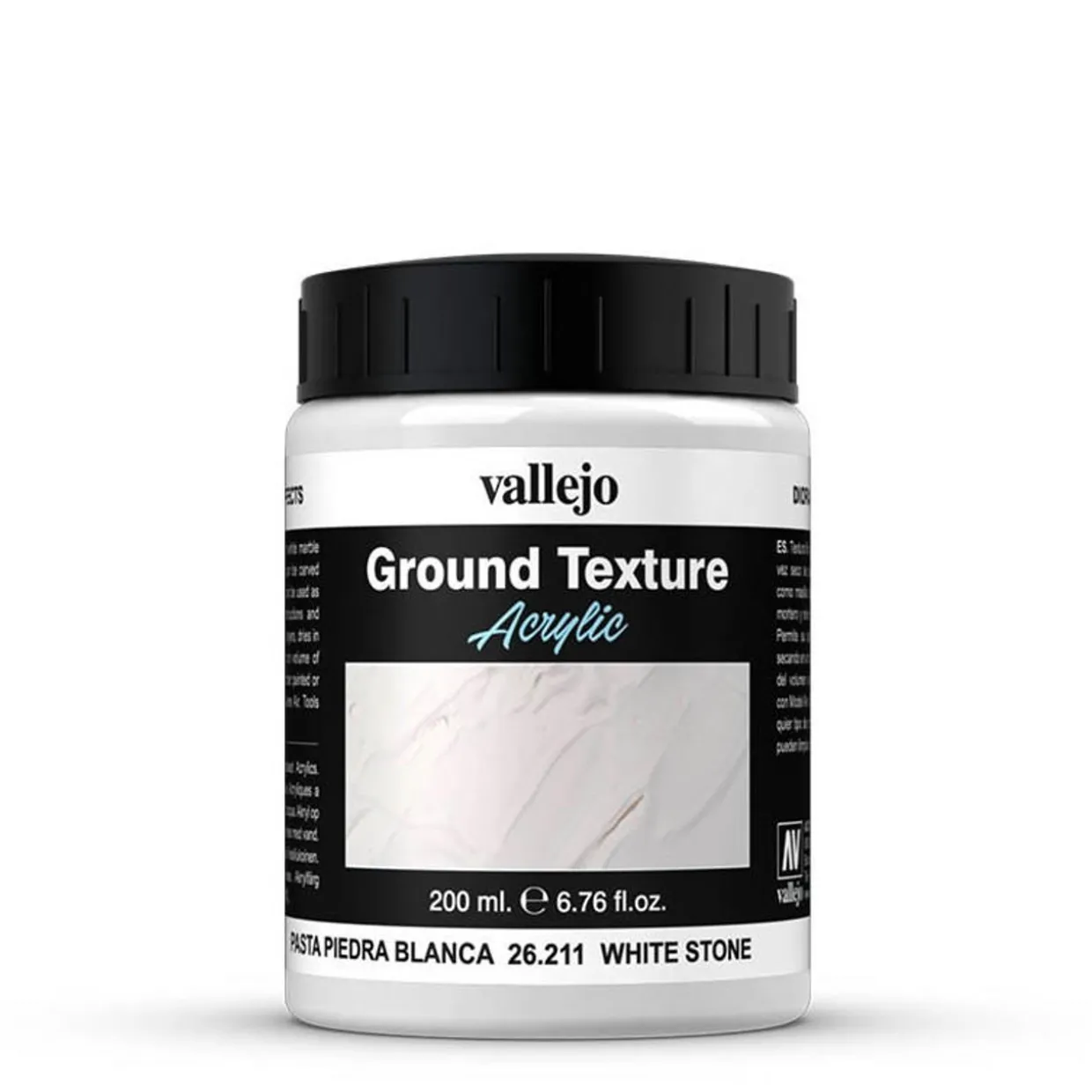 Vallejo Acrylic Stone Textures 200ml White Stone Paste. The innovative range of Weathering Effects offers the modeler a new medium for depicting the effects of exposure to weather and extreme climates on vehicles and armor.