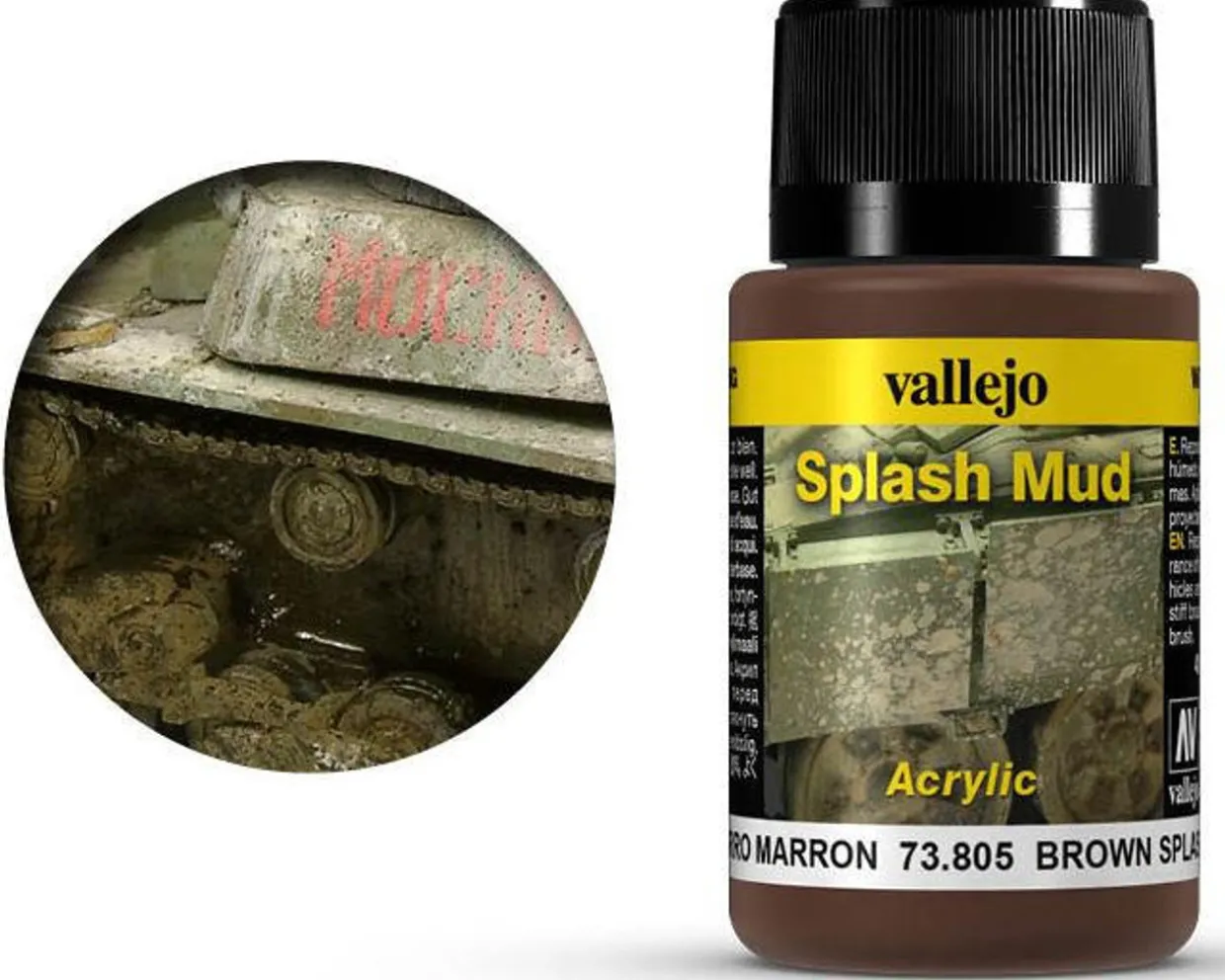 Vallejo Acrylic 40ml Brown Splash Mud. The innovative range of Weathering Effects offers the modeler a new medium for depicting the effects of exposure to weather and extreme climates on vehicles and armor.