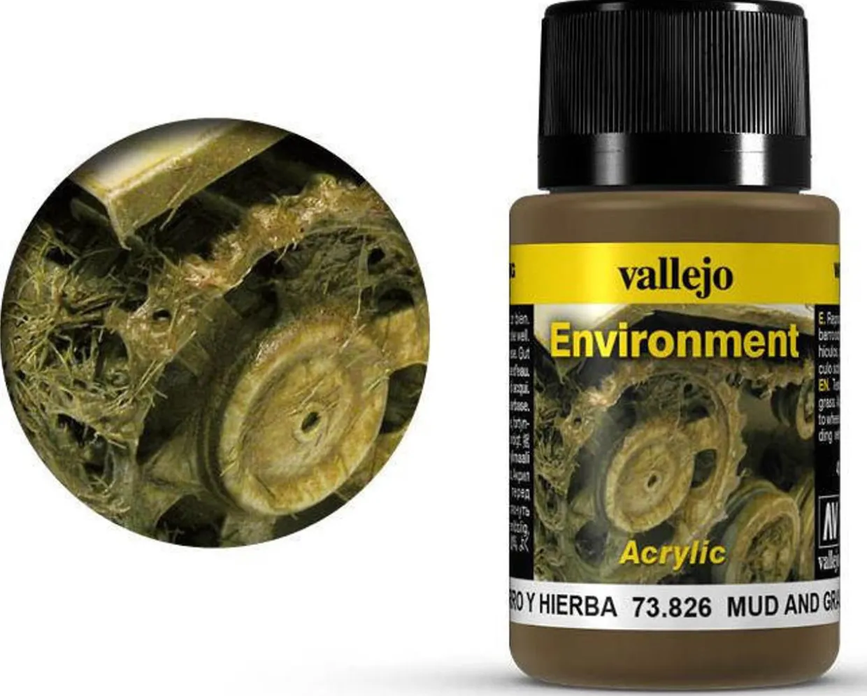 Vallejo Acrylic Weathering Effects 40ml Mud And Grass Effect. The innovative range of Weathering Effects offers the modeler a new medium for depicting the effects of exposure to weather and extreme climates on vehicles and armor.