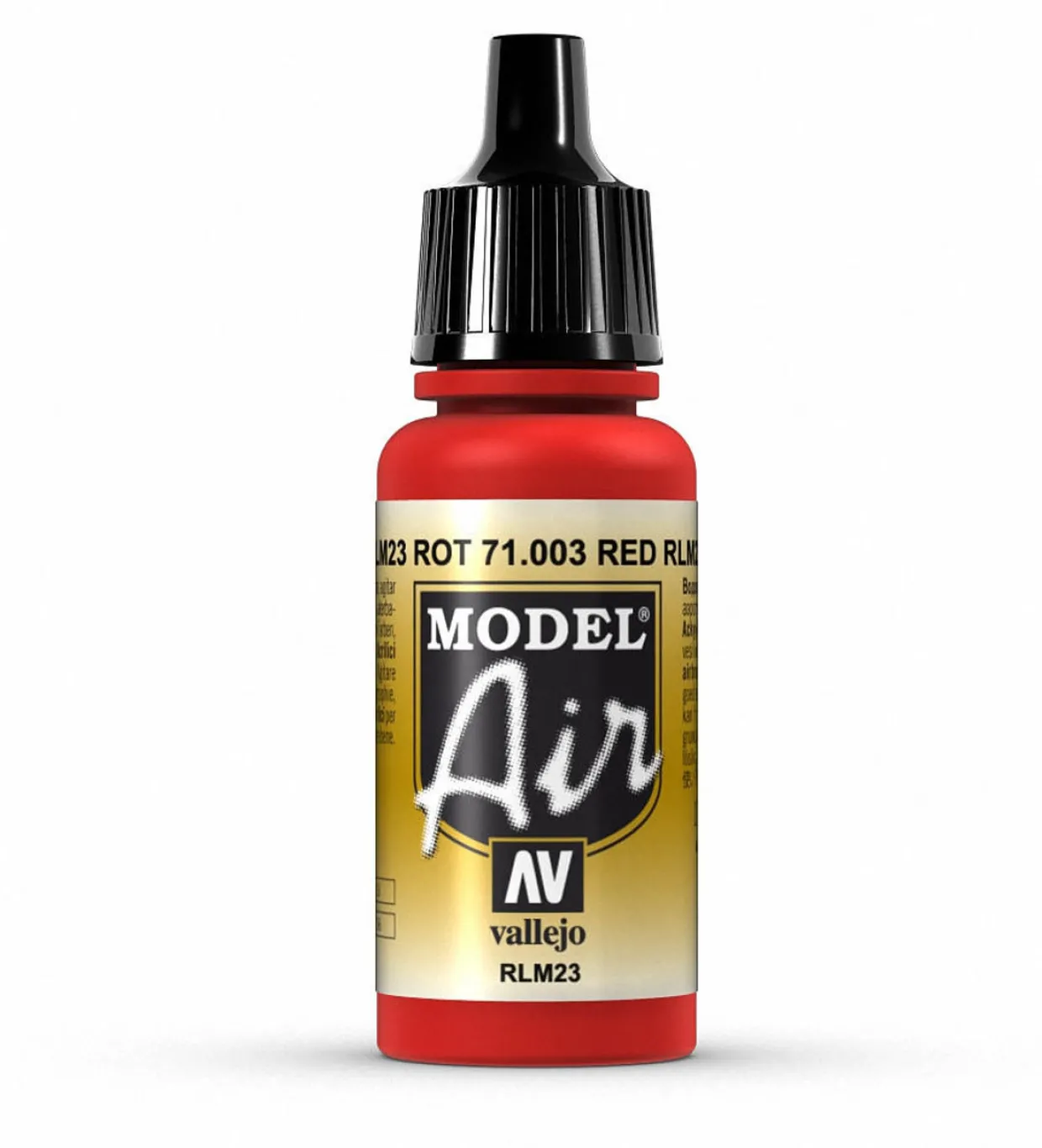 The Vallejo Model Air 003 17ml Red (RLM23) Matt Acrylic Paint is just one of many colours from the Model Air range. Vallejo Model Color Acrylic Paints range offers a wide selection of colours pre-thinned for use in an airbrush.