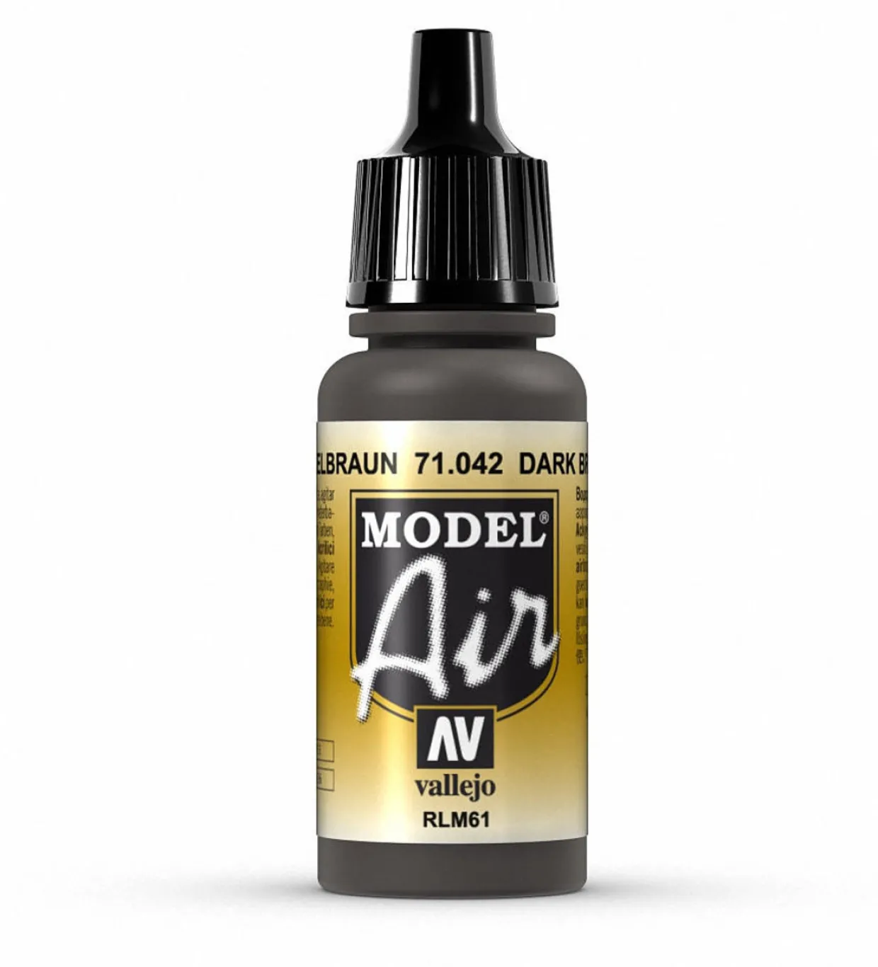The Vallejo Model Air 042 17ml Dark Brown Matt Acrylic Paint is just one of many colours from the Model Air range. Vallejo Model Color Acrylic Paints range offers a wide selection of colours pre-thinned for use in an airbrush.