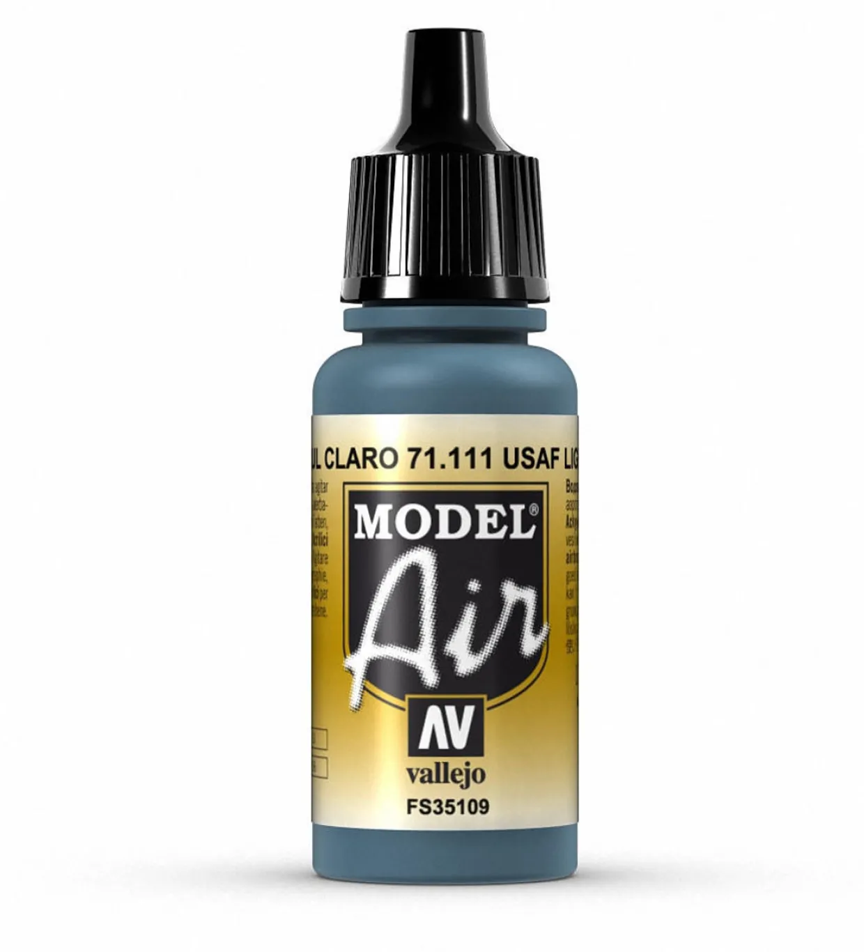 The Vallejo Model Air 111 17ml USAF Light Blue Matt Acrylic Paint is just one of many colours from the Model Air range. Vallejo Model Color Acrylic Paints range offers a wide selection of colours pre-thinned for use in an airbrush.