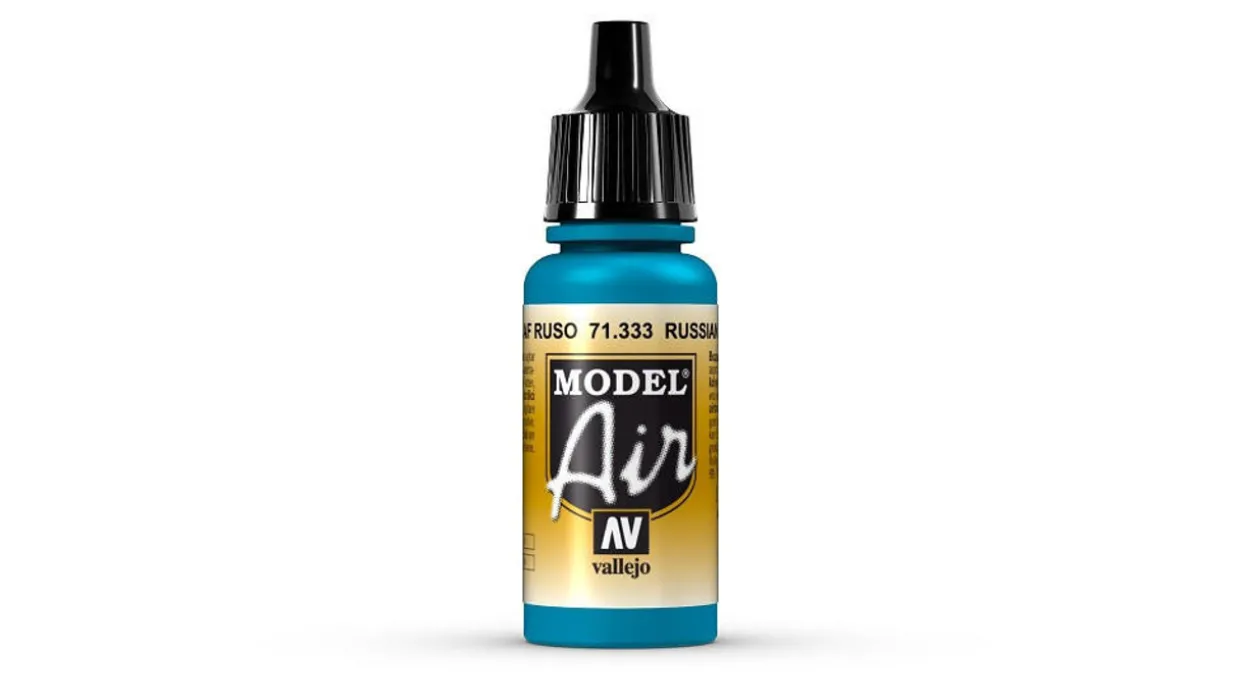 The Vallejo Model Air 333 Russian AF Blue Matt Acrylic Paint is just one of many colours from the Model Air range. Vallejo Model Color Acrylic Paints range offers a wide selection of colours pre-thinned for use in an airbrush.