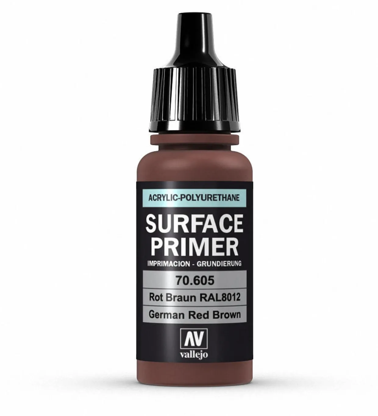 The Vallejo Model Air 70605 17ml German Red Brown (RAL 8012) Acrylic Polyurethane Primer is just one of many colours from the Model Air range. Vallejo Model Color Acrylic Paints range offers a wide selection of colours pre-thinned for use in an airbrush.