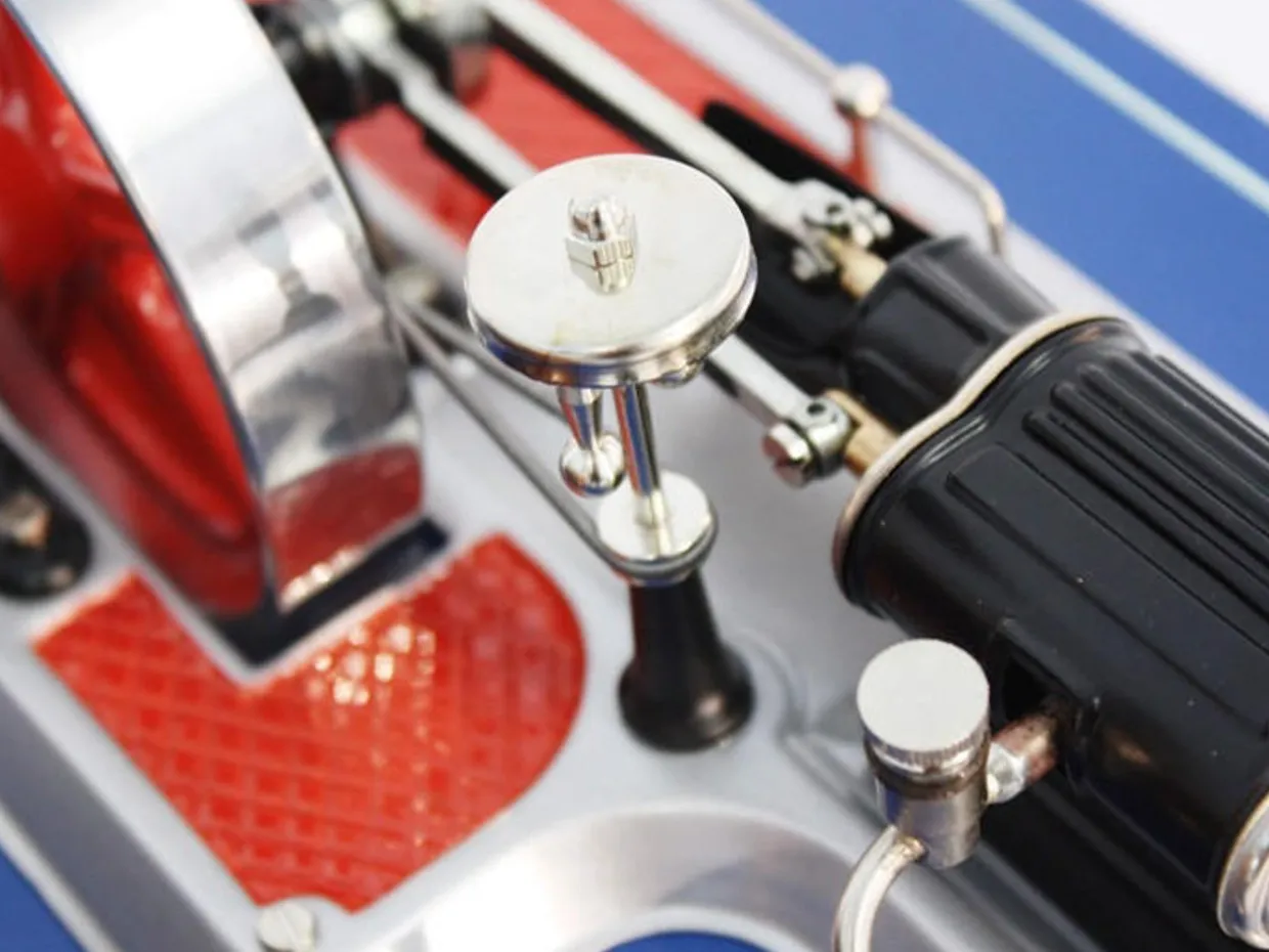 The Wilesco D20 Steam Engine has a mirror polished and nickel plated boiler, with a diameter of 2.6″, length 6.5″, boiler capacity 30.5 in, with water gauge glass, water drain cock.